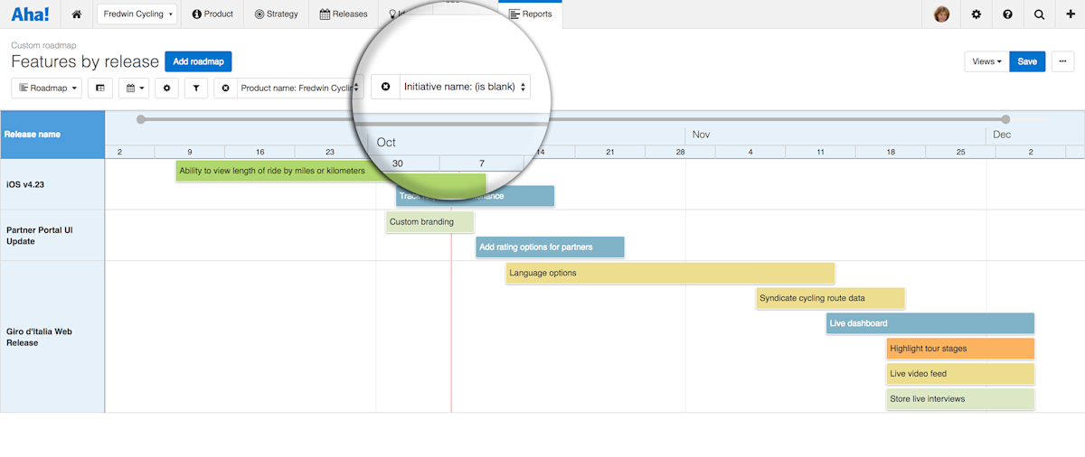 Advanced reporting filters are available to all Aha! customers. If you are not already an Aha! customer, you may want to sign up for a free 30-day trial or join a live demo to see why more than 200,000 users trust Aha! to set product strategy, create visual roadmaps, and prioritize releases and features.