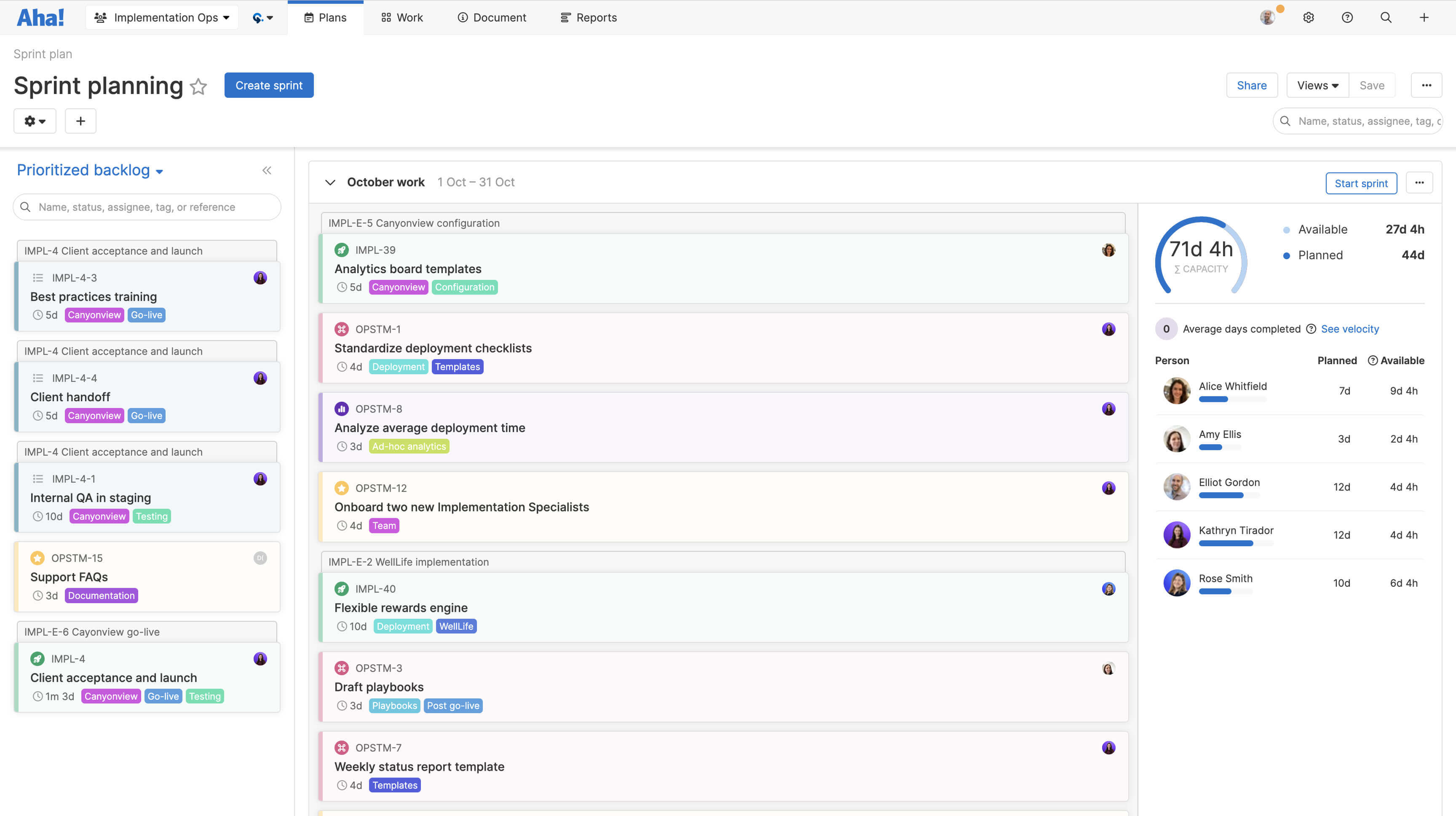 Each team member's capacity is calculated based on their availability and past work velocity — so you can plan with accuracy.
