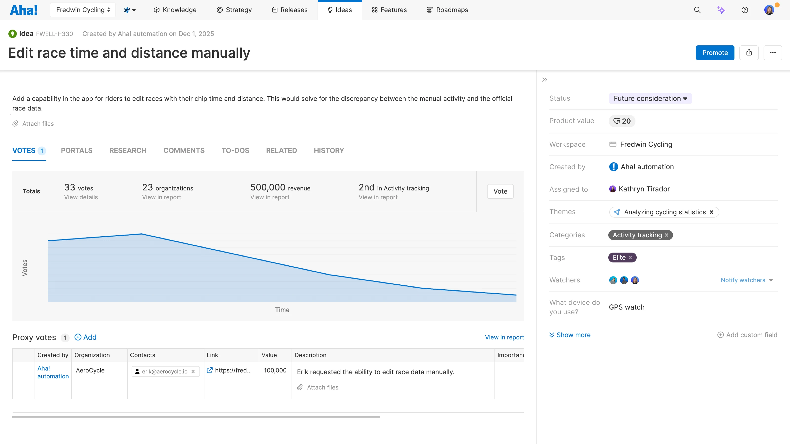 Centralize customer feedback: Gather requests in Aha! Ideas that sales and support teams receive in other applications.