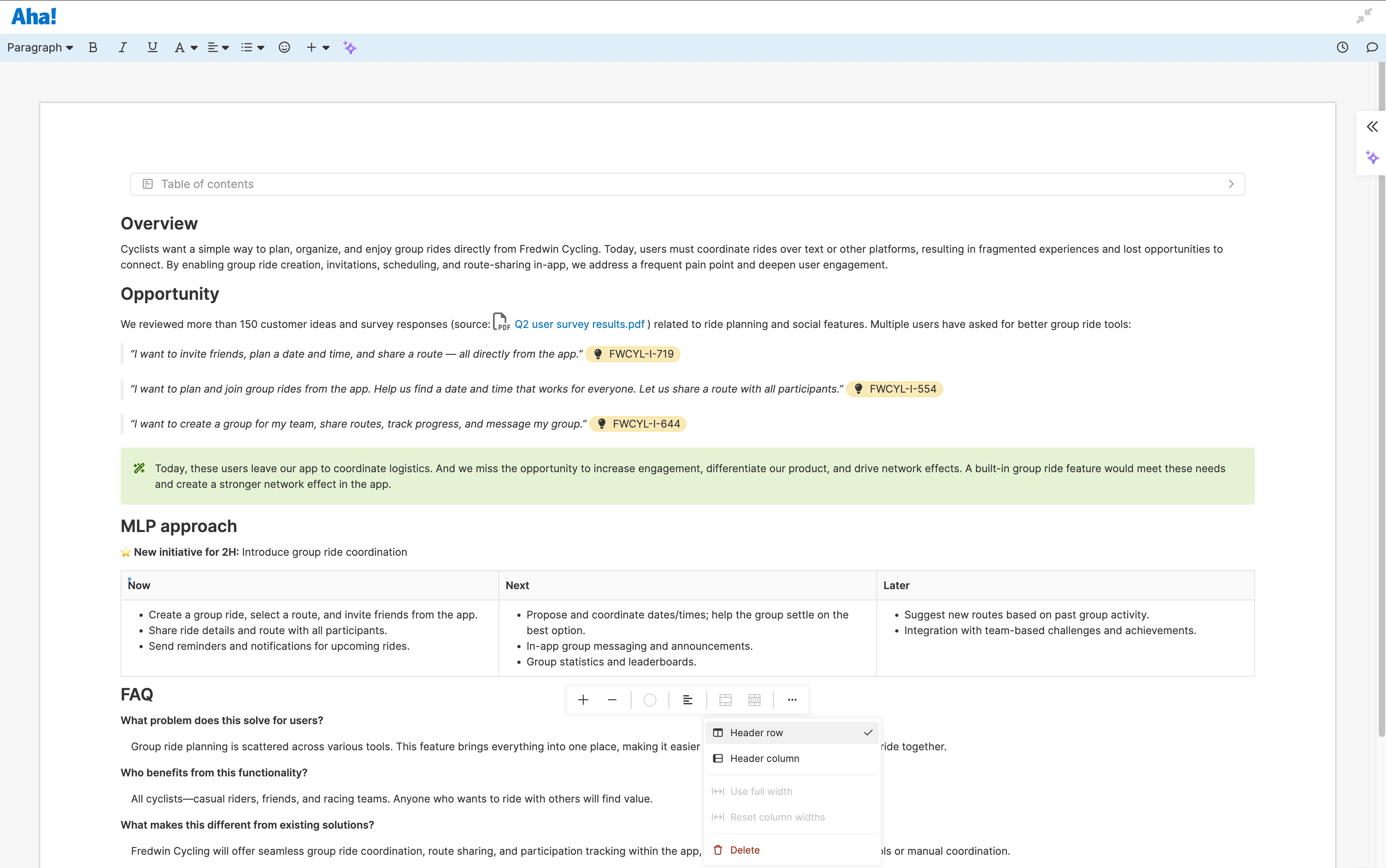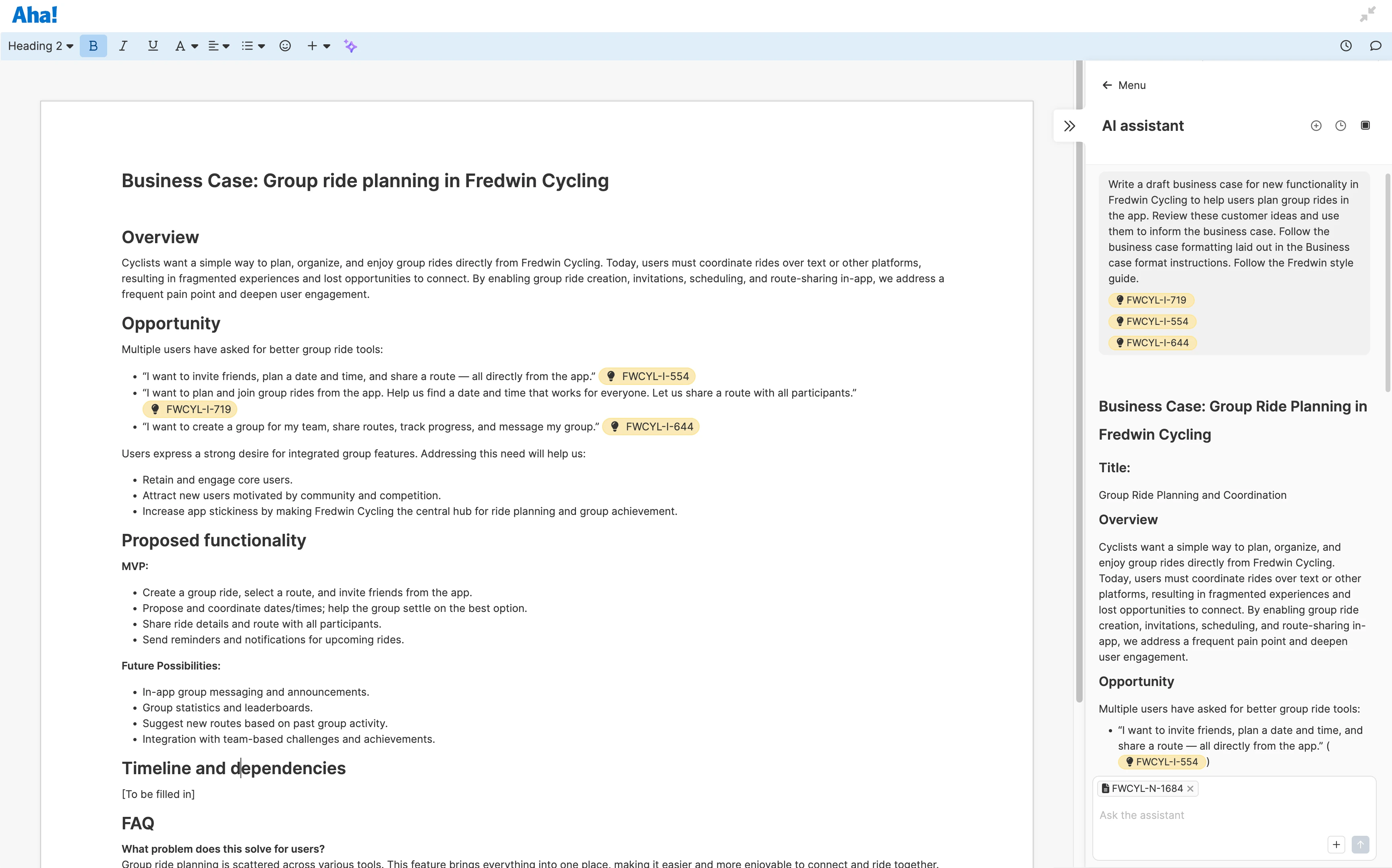 The next-generation text editor is now live across Aha! software — reuse content, create and link to records, and format documents with efficiency.