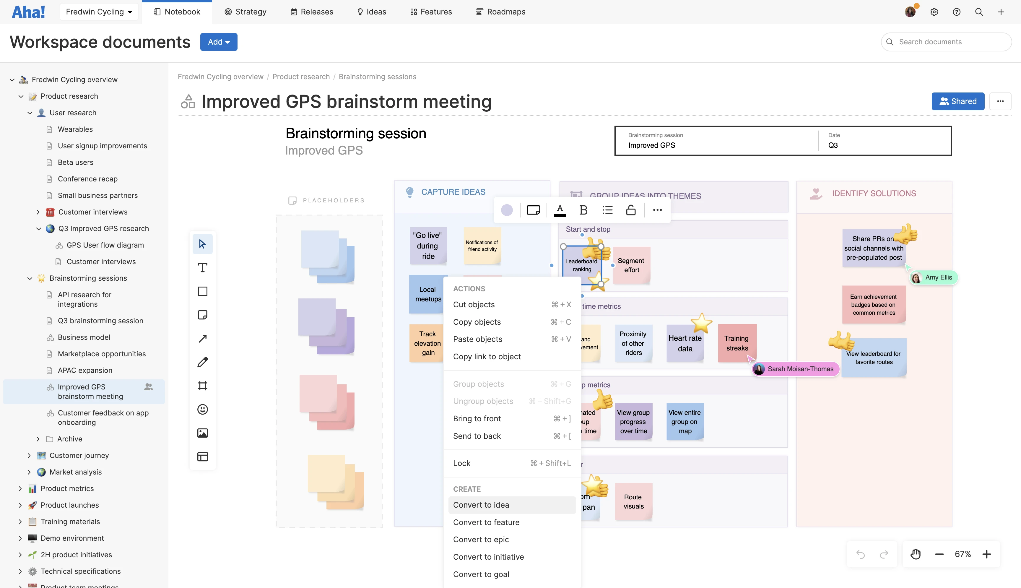 Today's update is all about keeping your product documentation well-organized and in one place. Of course, having powerful Notebook functionality built into all Aha! products already puts you a step ahead. You can manage all of your notes and whiteboards in a dedicated workspace — making it easy for the team to capture, share, and collaborate on information.