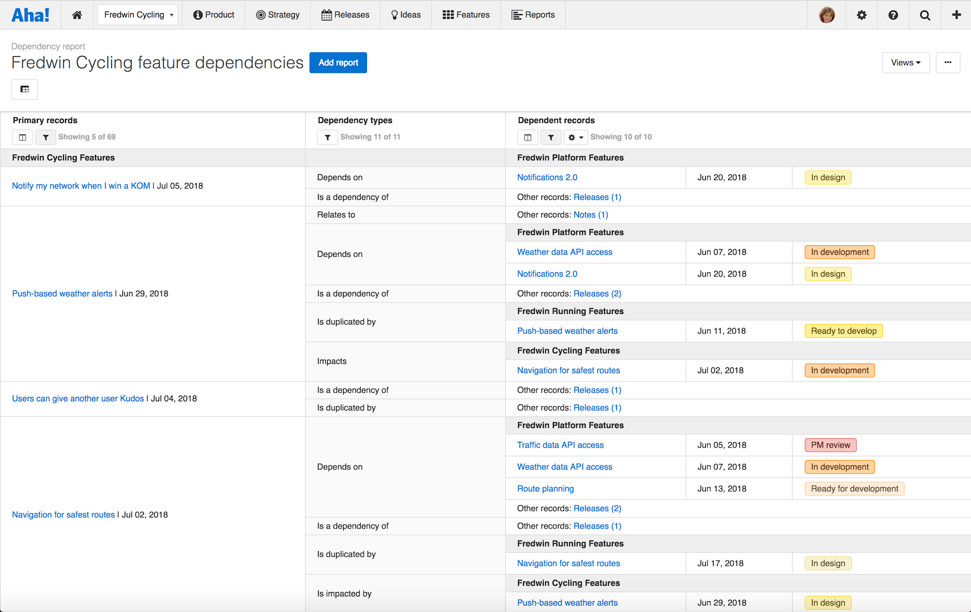 This is why we introduced a brand new report in Aha! which gives you more visibility into product dependencies, so you can take back control.