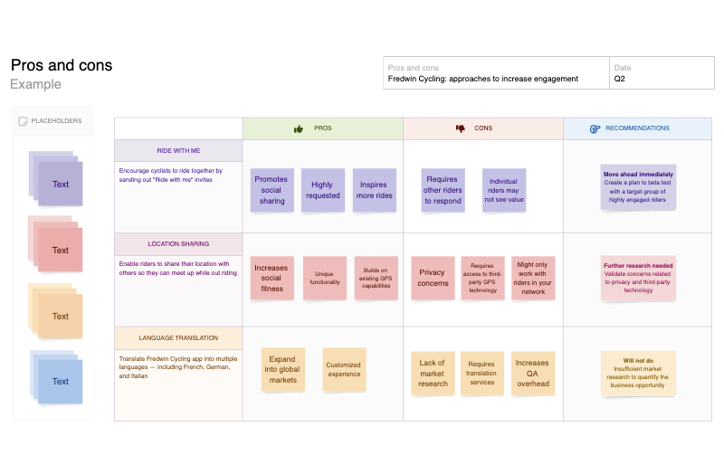 Add pros and cons: List the strengths and weaknesses of each approach. To stay objective, do some light research to help validate what you enter as potential positives and negatives. Consider how similar approaches performed in the past.