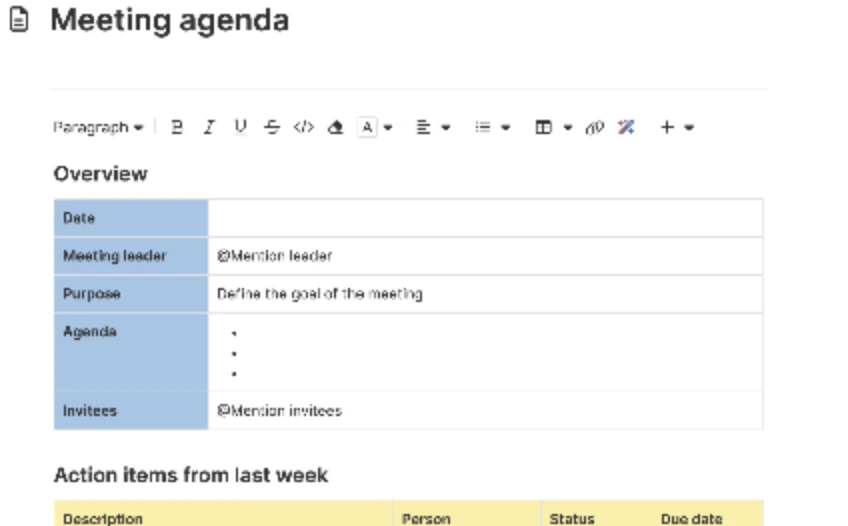 Meeting agenda