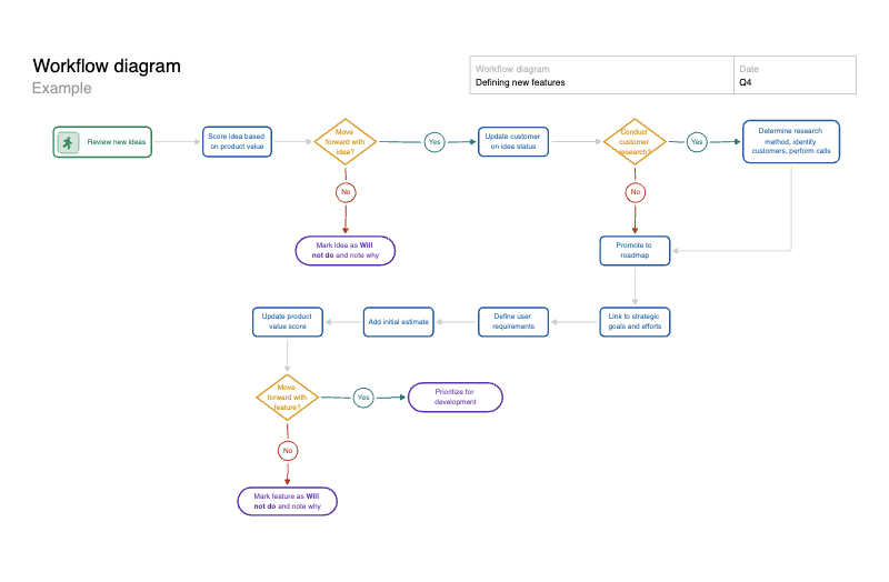 Yes. To use this business process diagram template, sign up for a free 30-day trial of Aha! Whiteboards. (You can also try this template in Aha! Roadmaps if you need a complete product management solution.) Easily customize the template to suit your needs, then share it with as many people as you want (for free) to streamline collaboration.