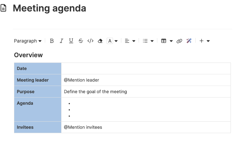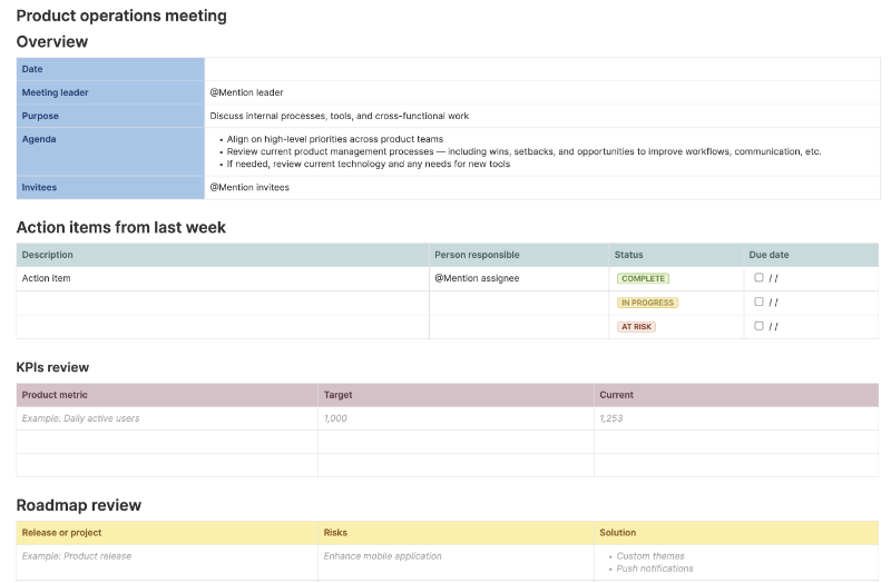 This meeting notes template includes built-in capabilities such as: